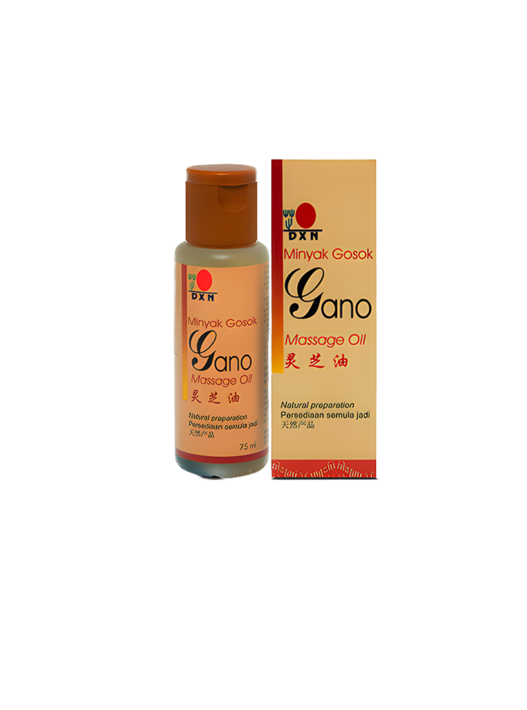 ١. زيت التدليك جانو من dxn مكون من زيت النخيل وهو غني بالجانوديرما